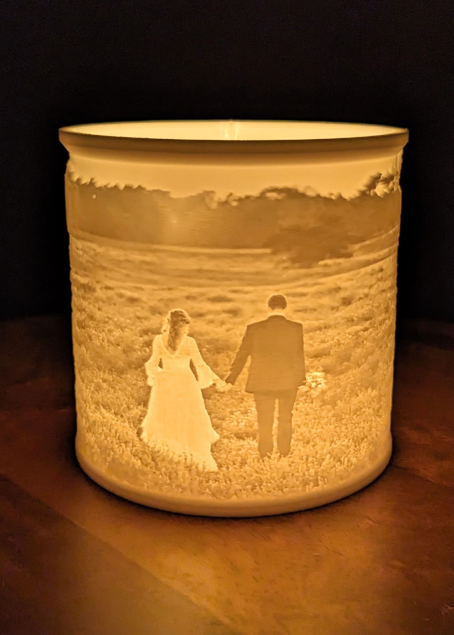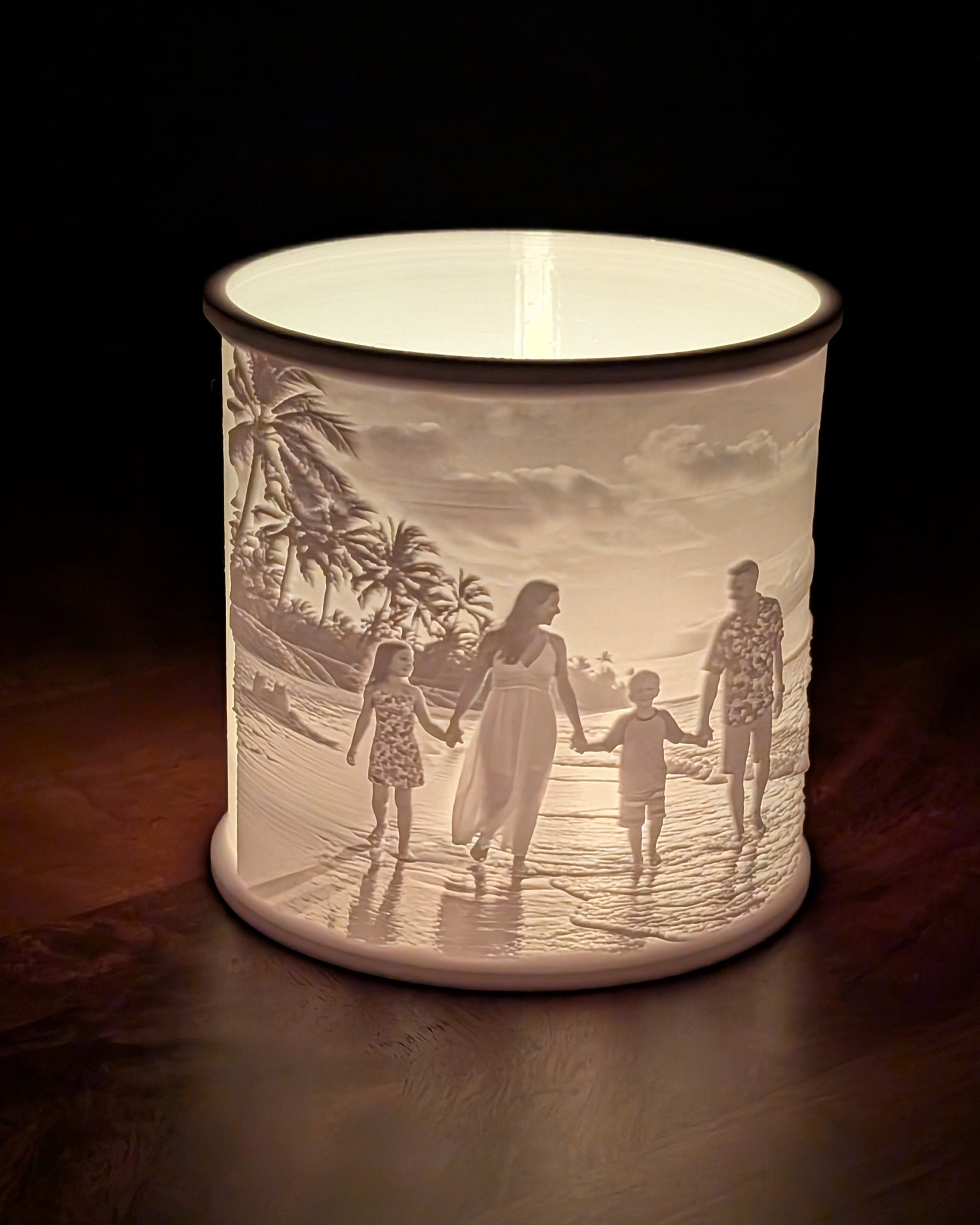 Lass deine schönsten Erinnerungen durch das Warme Licht unseres 3D-Relief Teelichts erstrahlen! Dieses einzigartige Kunstwerk wird mithilfe modernster 3D-Drucktechnik hergestellt und entfaltet seine volle Pracht, wenn ein Teelicht durch das filigrane Reliefbild scheint.